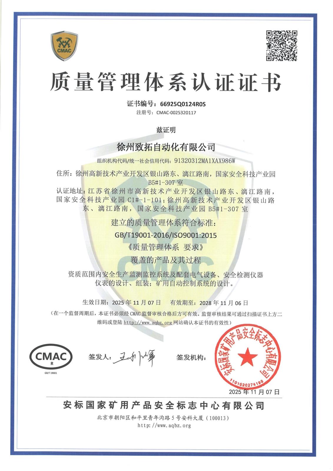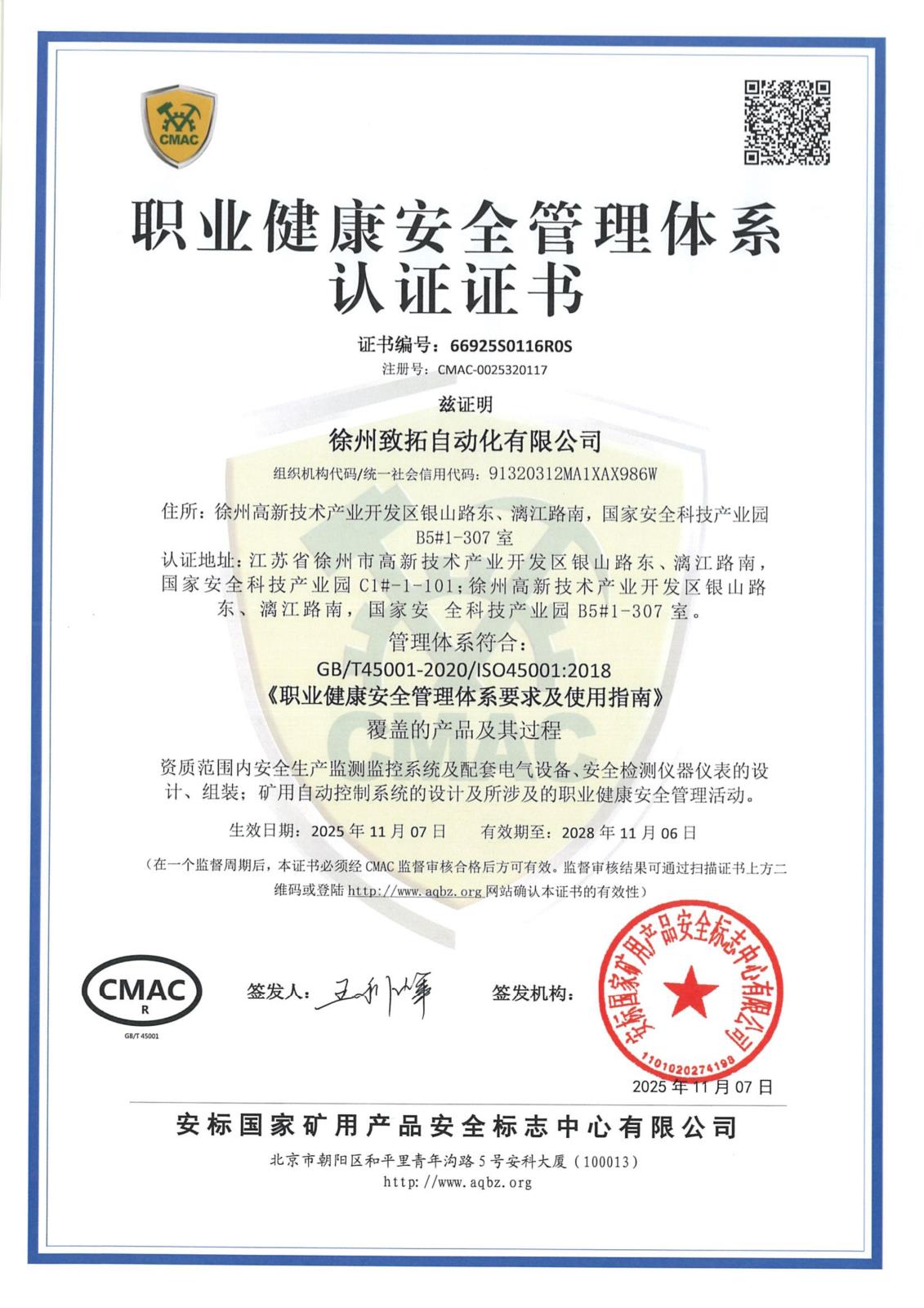 • 徐州致拓自動化順利通過國家安標中心現場監督評審!